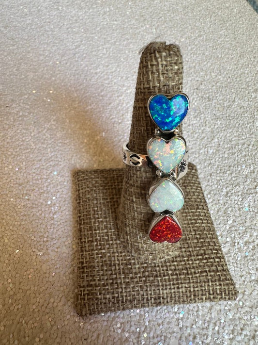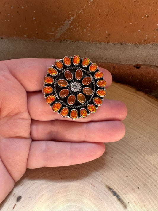 Handmade Fire Opal & Sterling Silver Adjustable Ri