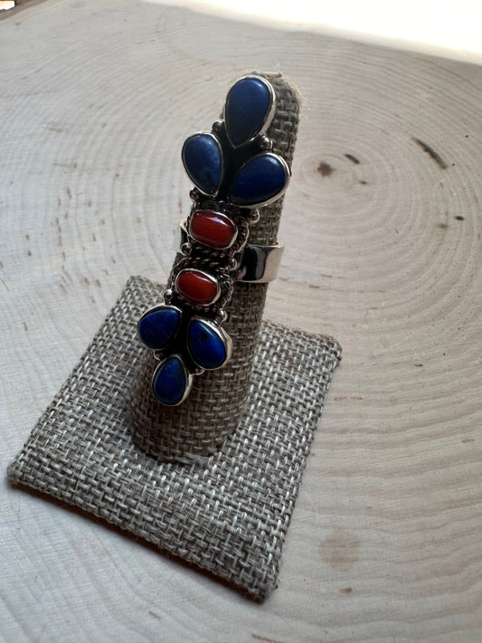 Handmade Lapis, Coral & Sterling Silver Adjustable
