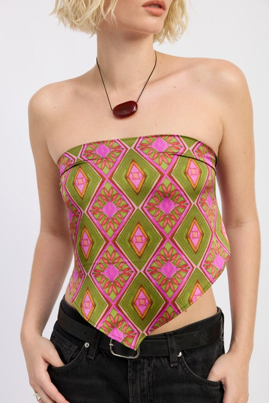 PRINTED SATIN BANDANA TOP