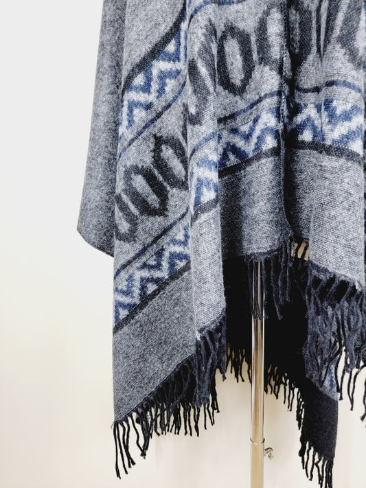 Poncho Shawl, Extra soft - Reversible Gray/Black