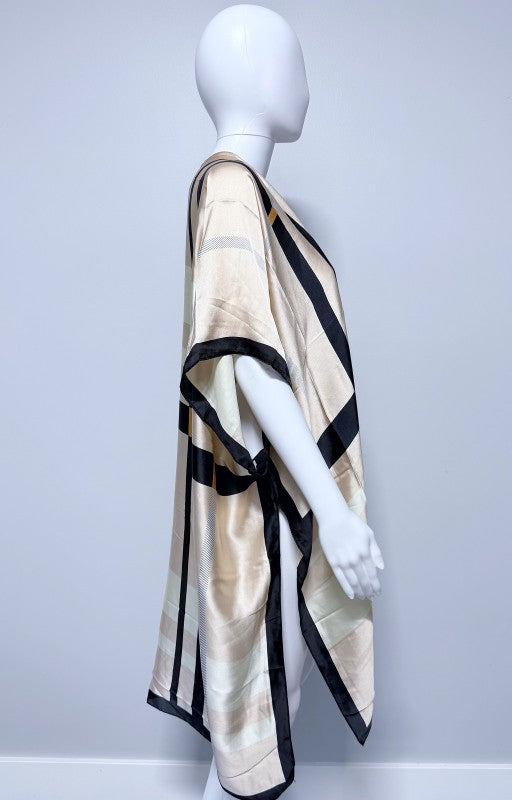 Silk Feel Check Pattern Shape Shawl