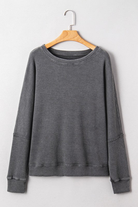 Waffle Knit Drop Sleeve Side Slits Oversized Top
