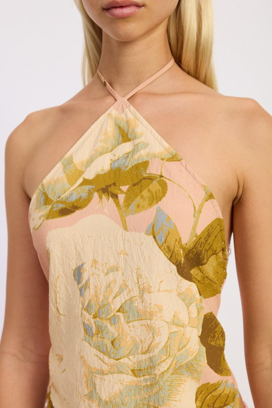 PRINTED HALTER SCARF TOP