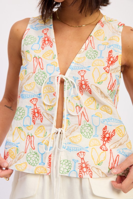 EMBROIDERED FRONT TIE VEST