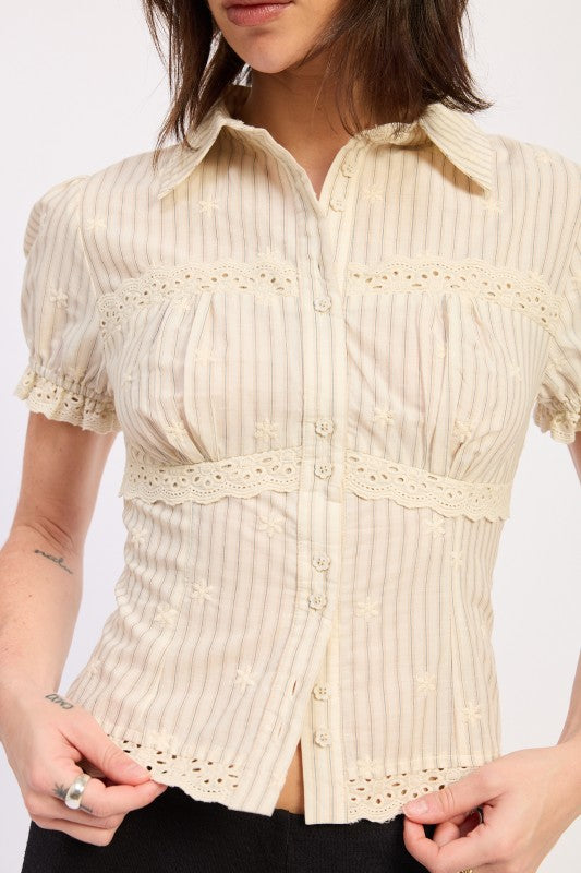 BUTTON UP CAP SLEEVE SHIRT