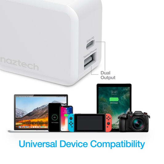 Naztech 30W USB-C PD Dual Output Fast Wall Charger