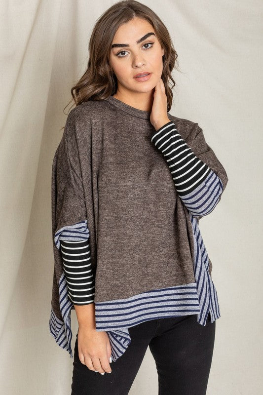 Cotton Black Striped Batwing Sleeve Oversized Top