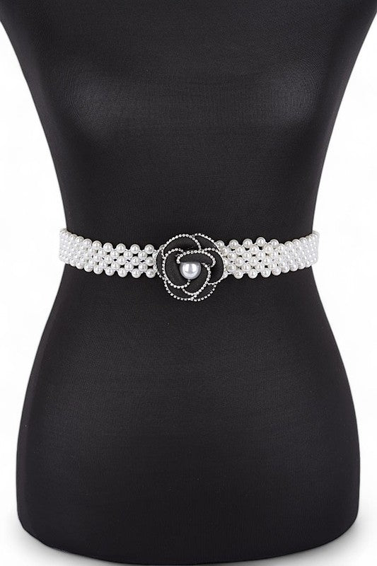 Camilla Rose Buckle Pearl Stretch Statement Belt