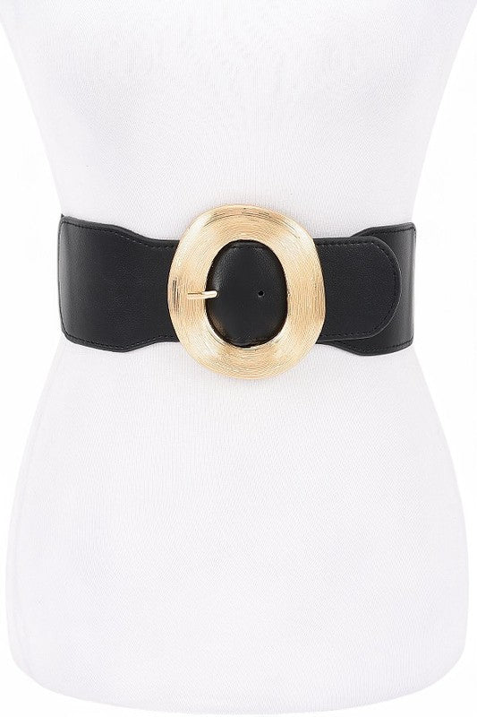 Brushed Textured Buckle Wide Elastic Fashion Belt