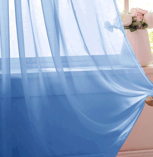 S.Blue Rod Pocket Sheer Window Curtain Set