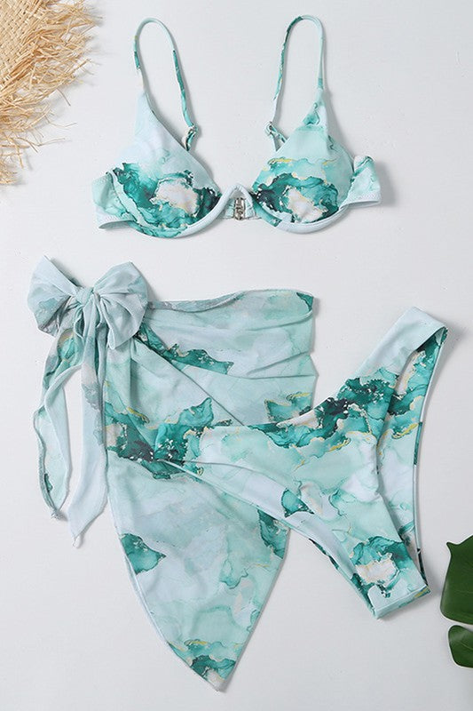 THREE-PIECE MESH RHINESTONE BATHING SUIT WITH COVE