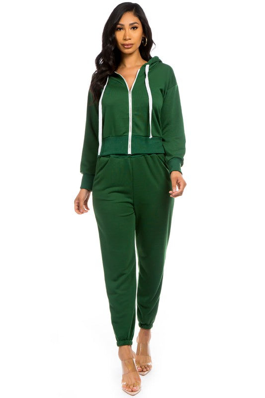 Ruffled Sleeve Zipped Top and Wide Leg Pants Set