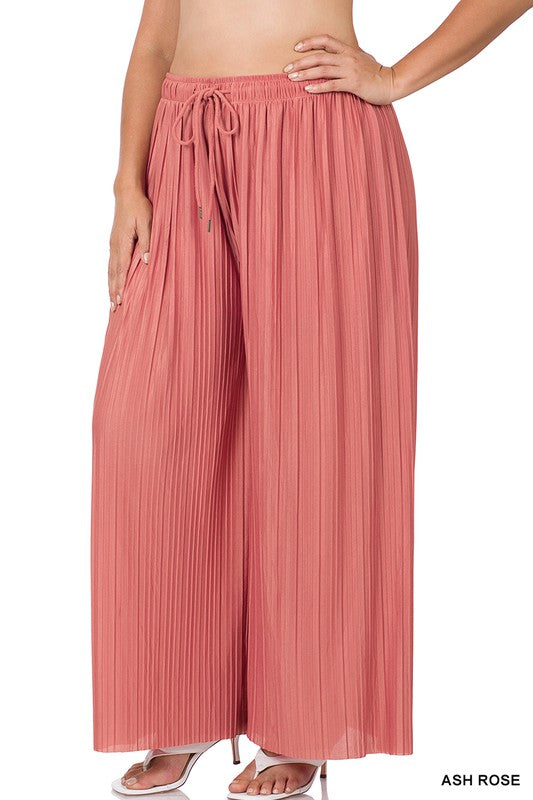 PLUS WOVEN PLEATED WIDE LEG PANTS WITH LINING
