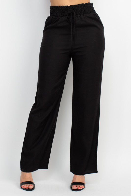 Smocked Waist Solid Full Pants