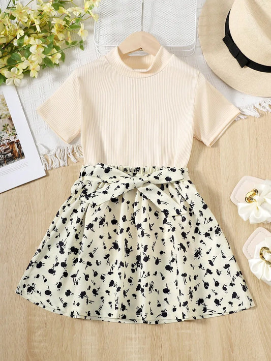 V Neck Tee & Patchwork Shorts Set