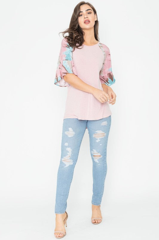 TIE FRONT BRALETTE TOP WITH PUFF SLEEVES
