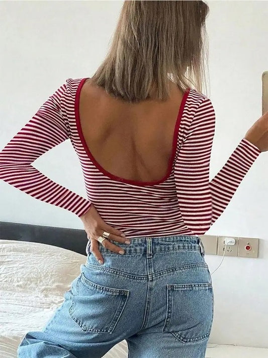 RUFFLED TIE BACK TOP WITH OPEN BACK