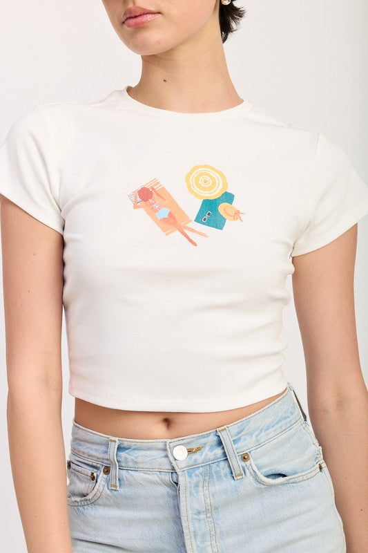 TIE FRONT BRALETTE TOP WITH PUFF SLEEVES