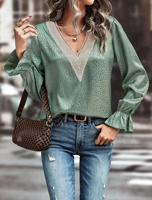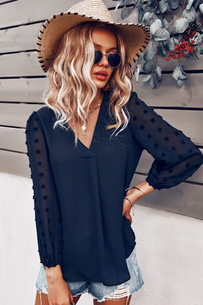 Rose Floral Mesh Flounce Sleeve Mock Neck Blouse