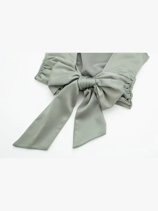 RUCHED FLORAL TOP WITH BOW DETAIL