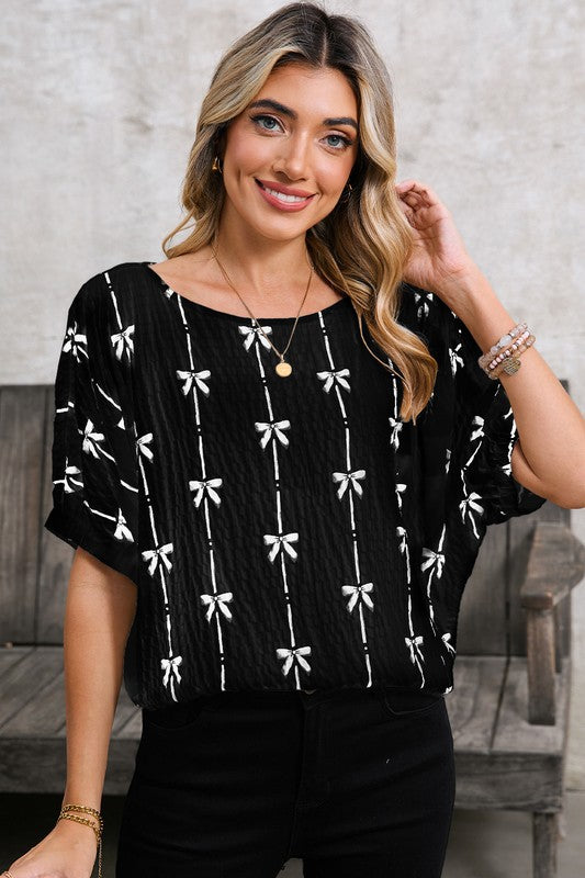 Bow Print Puff Top