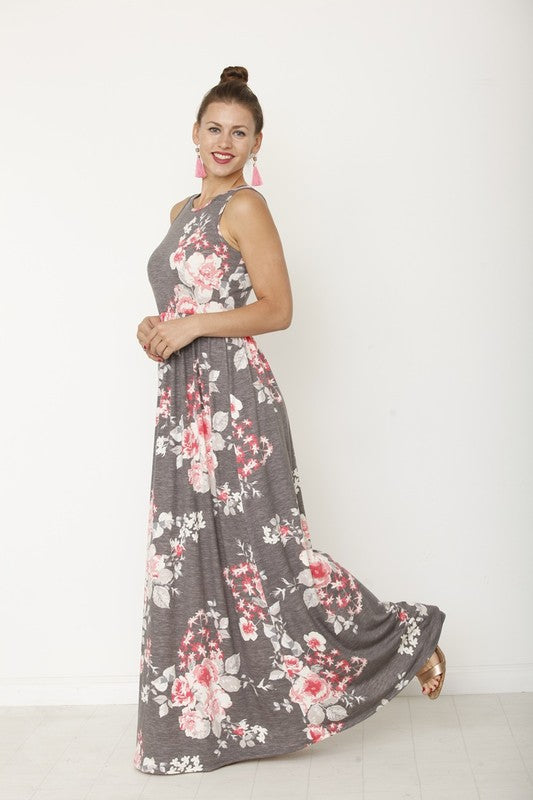 Vintage Floral Maxi Dress with Hidden Pocket