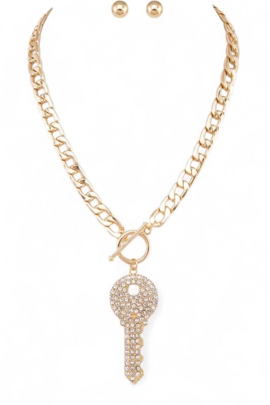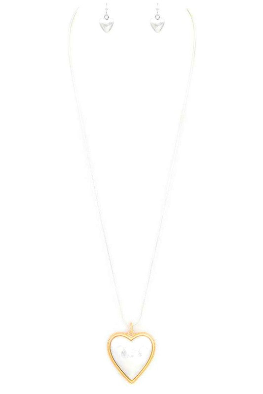 Classic Hammered 2 Tone Heart Pendant Necklace Set