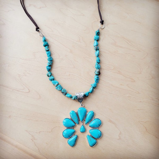 Turquoise Squash Blossom Necklace w/ Leather Ties