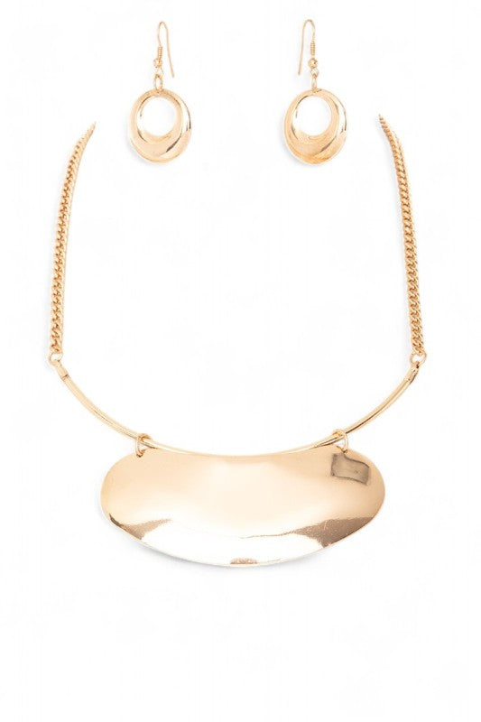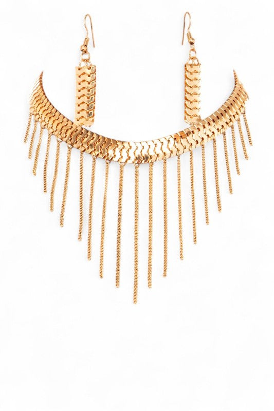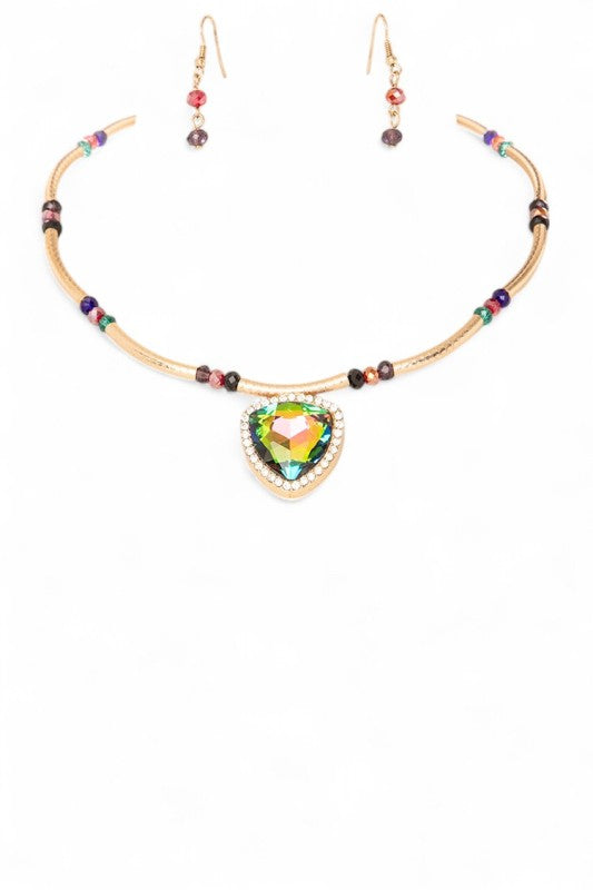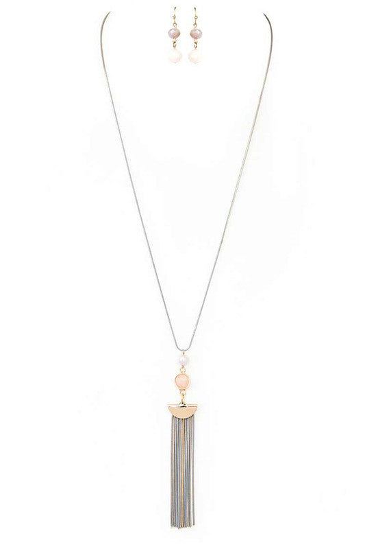 Mix Tone Chain Tassel Stone Pendant Necklace Set