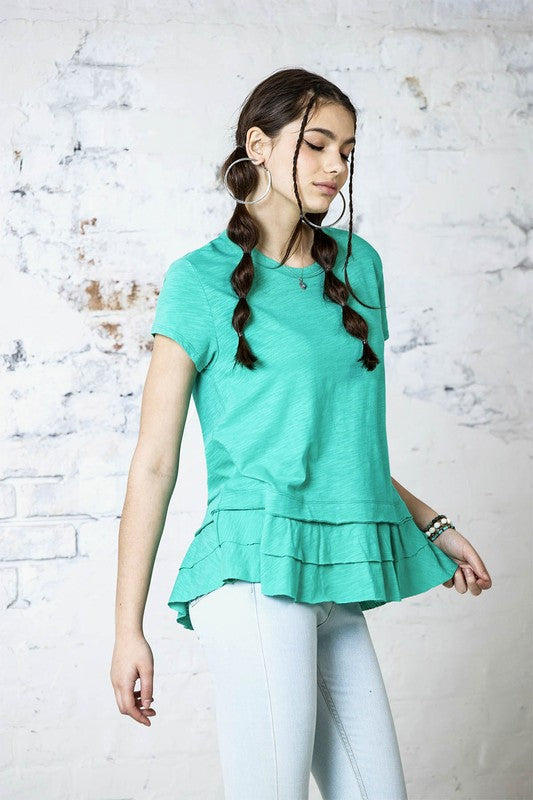 Plus Layered Ruffle Hem Short Sleeve Cotton Tee