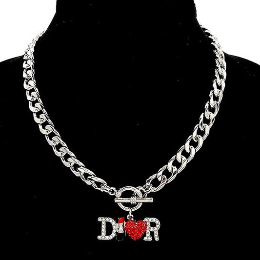 D Lipstick Hear R Pendant Cuban Chain Necklace