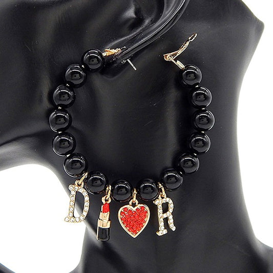 Initial DR Lipstic Heart Dangle Hoop Earrings