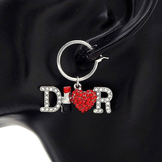 LUxury Inspired D Lipsti Heart R Hoop Earrings