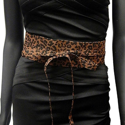 Leopard Pattern Suede Wrap Around Fashion Belt