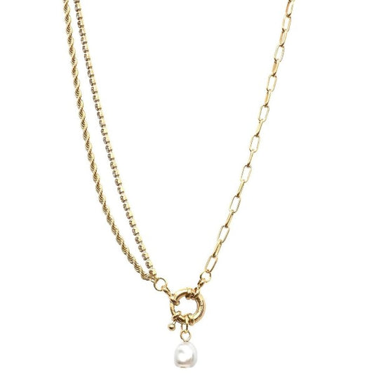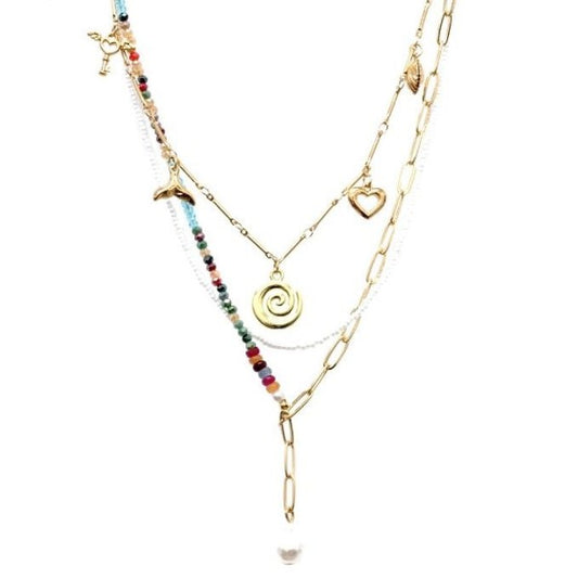 Ocean Theme Bead Chain Pearls Layered Necklace