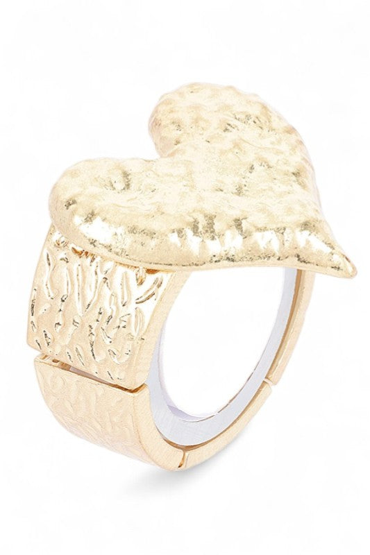Classic Hammered 2 Tone Heart Pendant Necklace Set