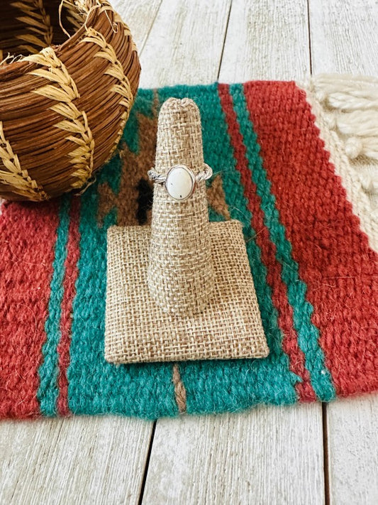 Navajo White Buffalo & Twisted Sterling Silver Rin