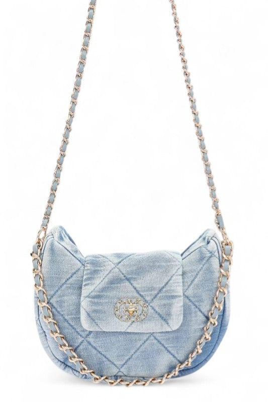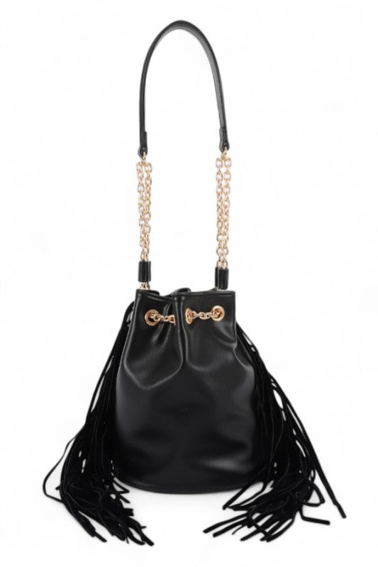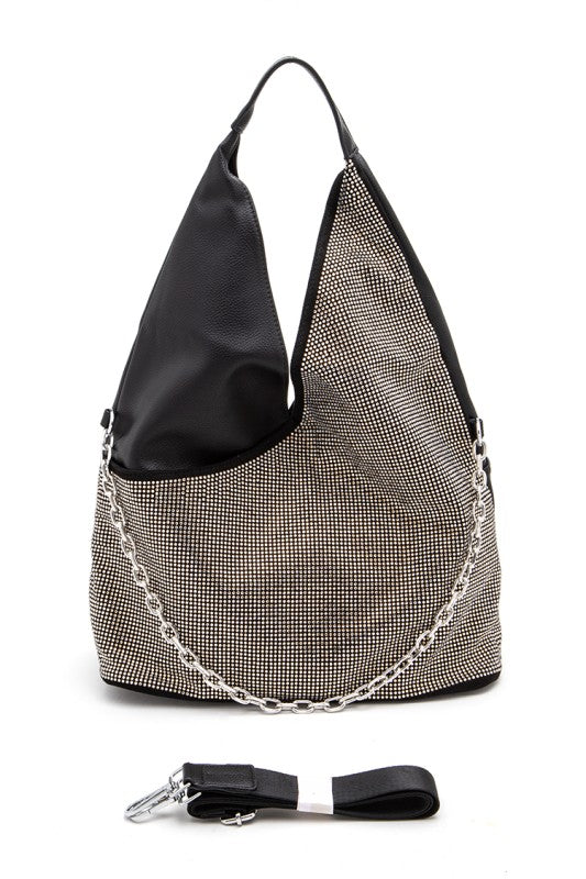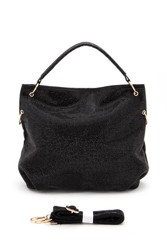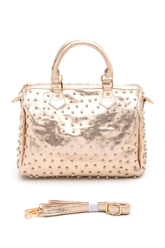 Metallic Faux Leather Studded Top Handle Swing Bag