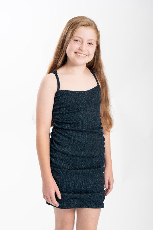 GIRLS ISABELLA LEATHER SMOCKED SHORT SLEEVE DRESS