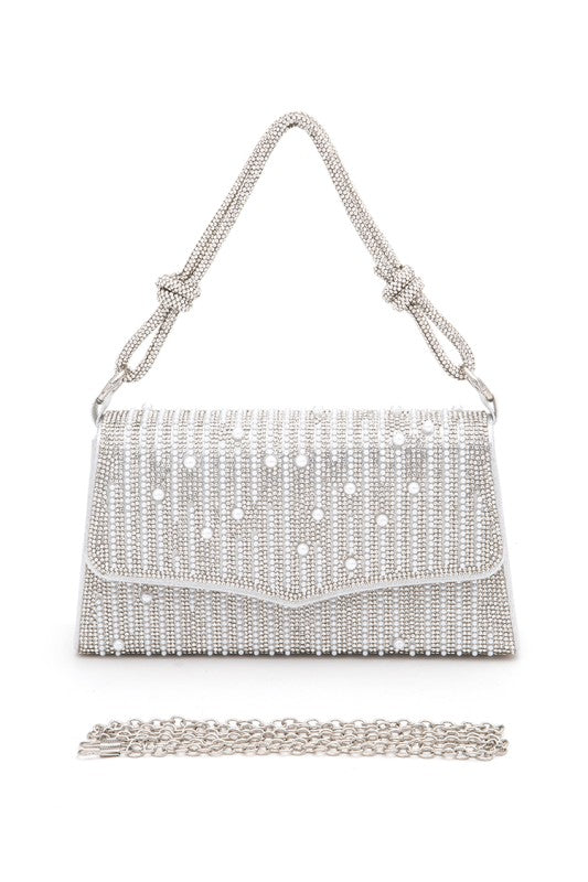 Rhinestone Pearl Top Handle Statement Clutch Bag