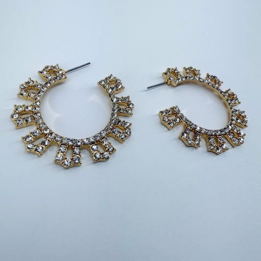 Gold or Silver Finish Clear Rhinestones Round Hoop