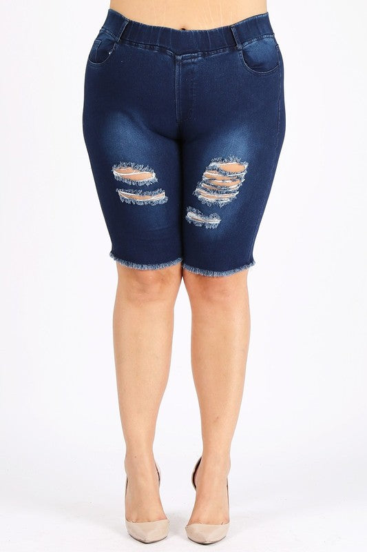 Plus Hi-Waist Distressed Bermuda Short Jeggings