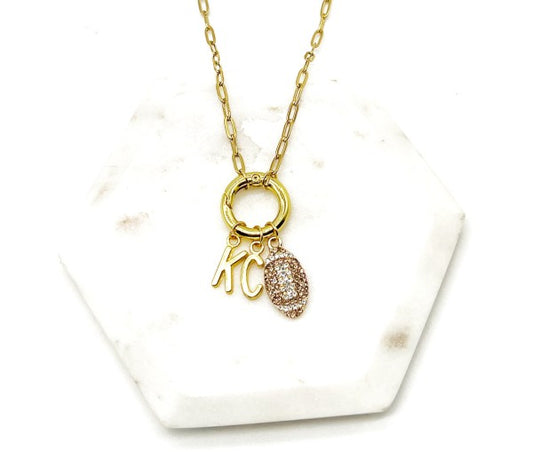 Chiefs Charm Rhinestone Kansas City Necklace KC