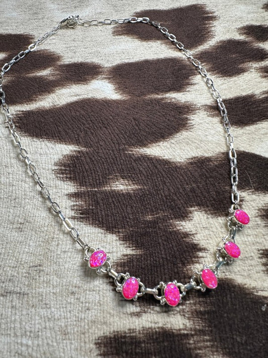 Handmade Sterling Silver & Hot Pink Fire Opal Neck