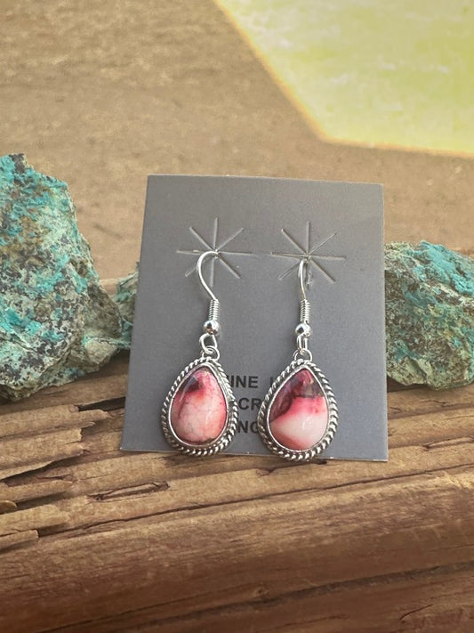 Navajo Sterling Silver & Rose Dahlia Dangle Earrin