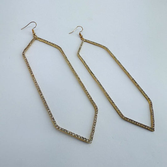 Extra Long Hexagon Shape Rhinestones Earrings