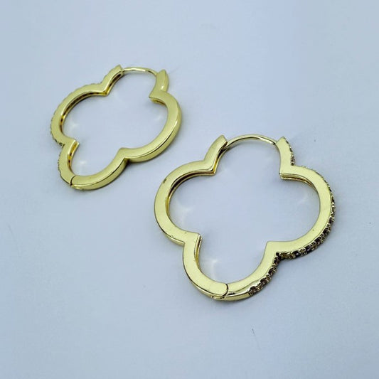 Clover Shape with Clear Rhinestones Hoop Earrings