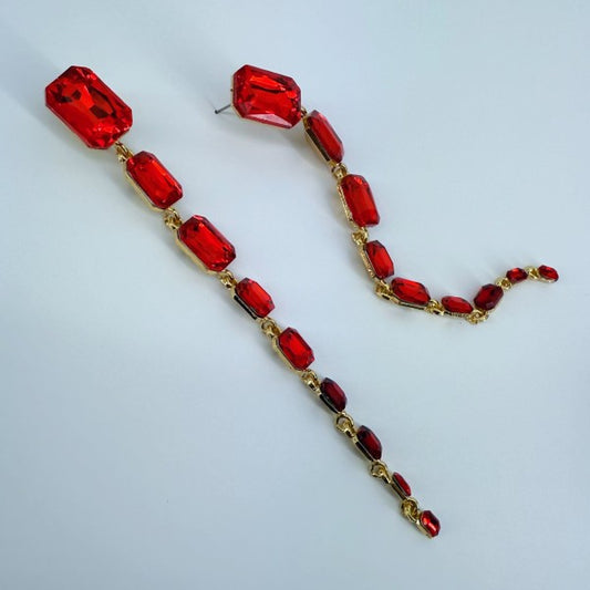 Extra Long Red Rectangle Stones Drop Dangle Earrin