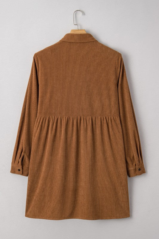 Plus Size Corduroy Button-Up Collared Shirt Dress