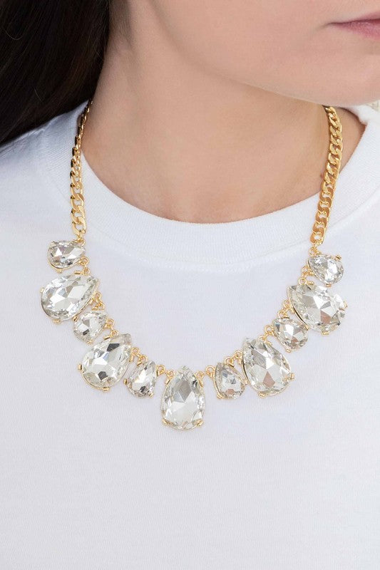 Briel Bejeweled Tear Drop Necklace | Crystal